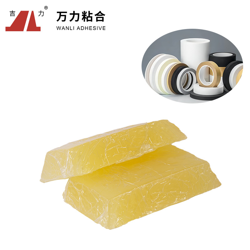 Di buona qualità della fabbrica viscosità direttamente circa 11000mpa·adesivo caldo sensibile alla pressione della colata del blocchetto WANLI® TPR-6258C di giallo di s (160℃) per il nastro adesivo della vetroresina & l'applicazione di Ton Pack Adhesive Tape Production